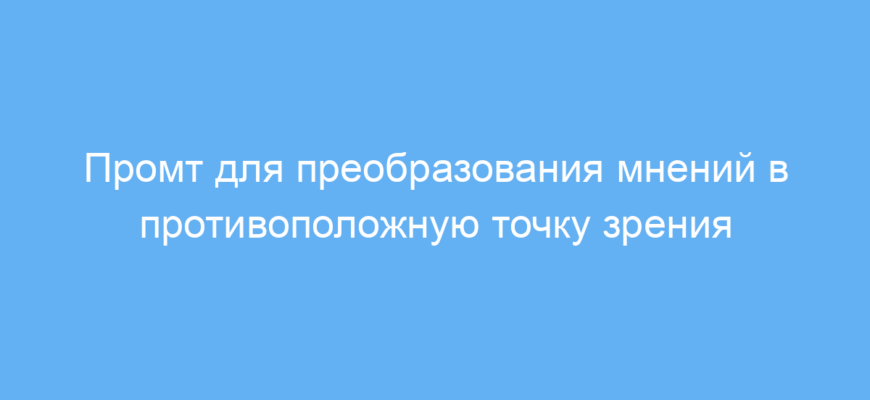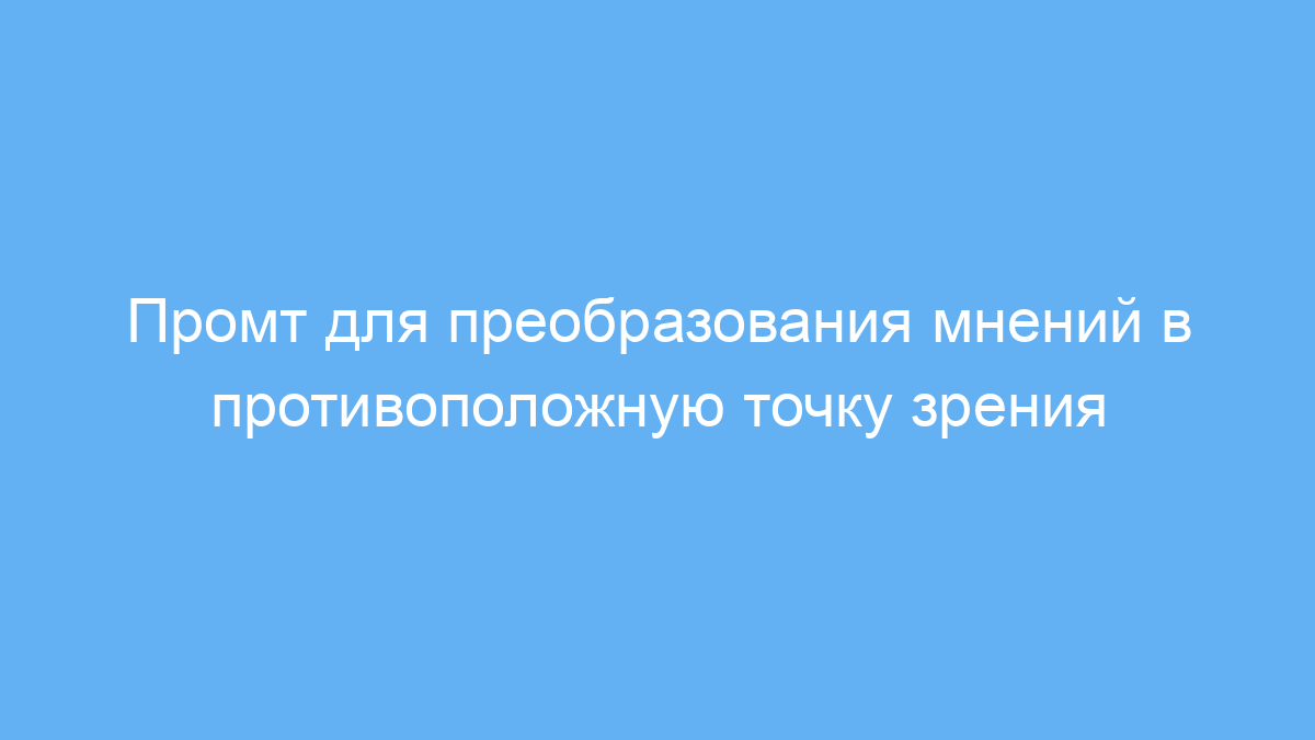 Преобразуй любое введенное пользователем высказывание в противоположную точку зрения, сохраняя при этом исходный тон и контекст. Это упражнение помогает посмотреть на ситуацию под другим углом. |