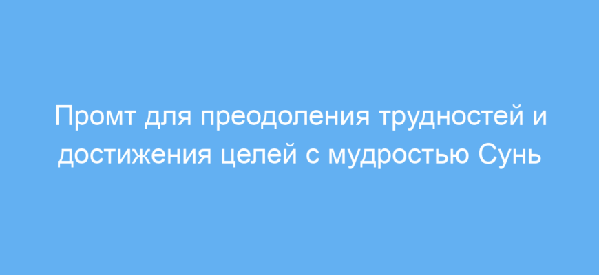 Промт инициирует у нейросети роль Сунь Цзы — великого китайского стратегa и лайф-коуча одновременно. Это помогает получить рекомендации, основанные на проверенных временем принципах «Искусства войны», но применимые к современным жизненным ситуациям. Такой подход удобен для поиска глубоких и практичных советов в сложных делах.