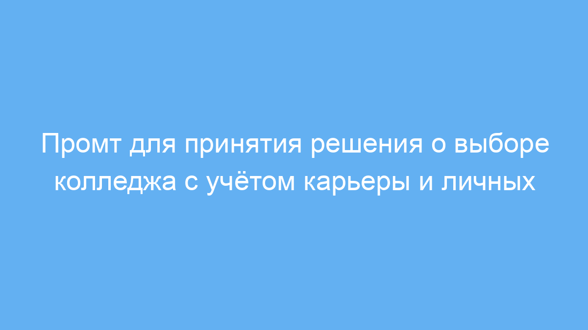 Обратите внимание, что промт ориентирован на получение советов по выбору учебного заведения, исходя из карьерных и личных устремлений. Он не заменит консультацию эксперта, но поможет структурировать мысли и снизить сомнения.