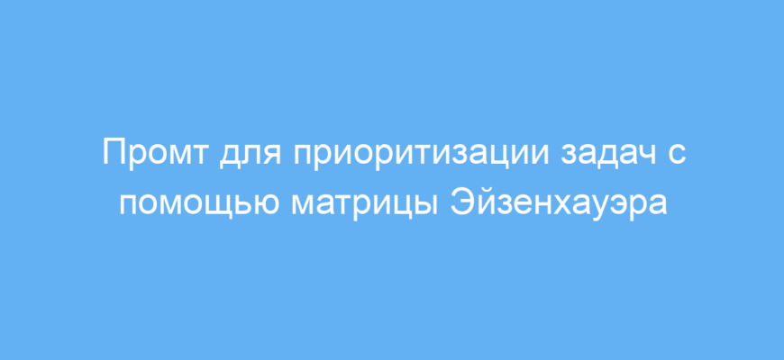 Промт помогает разложить задачи по матрице Эйзенхауэра — инструменту, который делит дела на четыре категории по важности и срочности. Это упрощает принятие решений: какие задачи делать сразу, какие планировать и какие отложить или делегировать. Вы просто предоставляете список своих дел, а нейросеть задает уточняющие вопросы и распределяет их по четырем квадрантам.