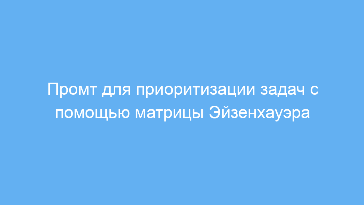 Этот промт помогает быстро и четко разобраться с большим списком дел, оптимизировать время и не допускать ошибок в приоритизации. Вы научитесь выделять действительно важные задачи и избегать ловушек прокрастинации и реакции на сиюминутные заботы.