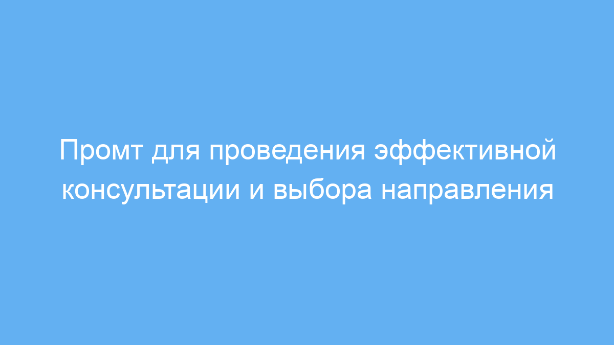 Промт решает таких задачи, как установление доверия, понимание мотивации клиента и быстрый переход к конкретным рекомендациям по бизнес-направлениям. Благодаря четкой цепочке вопросов и пояснений, консультант может сделать разговор более продуктивным и направленным на результат.