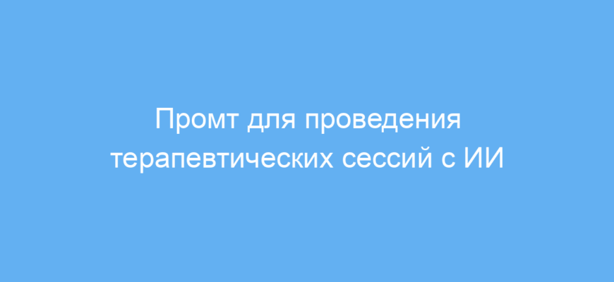 Этот промт экономит время и силы при создании терапевтического диалога с искусственным интеллектом. Он позволяет глубоко и внимательно исследовать свои эмоции в комфортной, поддерживающей обстановке, без давления и стандартных ограничений ИИ. Таким образом, пользователь получает персональный опыт, близкий к настоящей терапии.