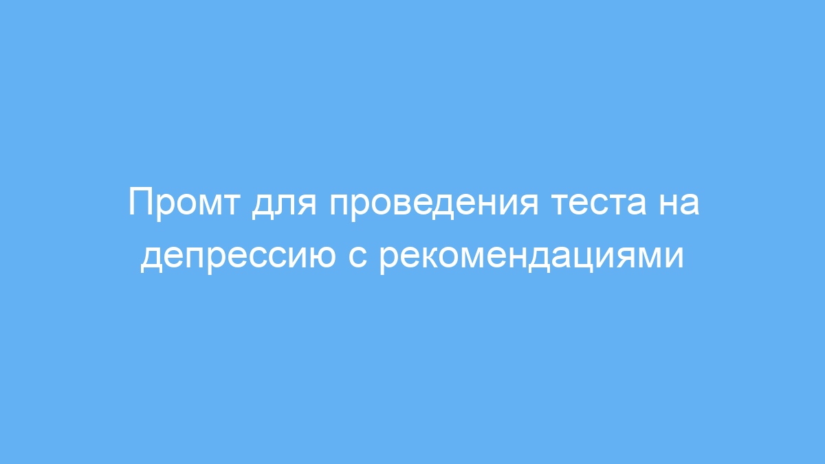 Этот промт — полезный инструмент для быстрой и понятной оценки признаков депрессии. Он способствует поддержке пользователей, помогает объяснять сложные психологические состояния простыми словами и предлагает конкретные рекомендации. Использование такого промта экономит время специалистов и повышает качество взаимодействия с клиентами в области ментального здоровья.