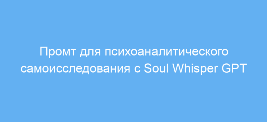 Этот промт помогает наладить внутренний диалог и активировать саморефлексию, используя методы психоанализа, встроенные в нейросеть. Он экономит время и силы, позволяя получить мягкую и доступную поддержку для понимания своих эмоций и внутренних проблем. Использование промта — это первый шаг к осознанности, самопониманию и эмоциональному благополучию.