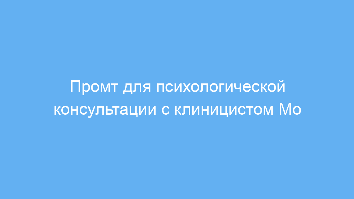 Принцип работы промта заключается в создании роли клинического психолога «Мо» с выраженными личностными качествами и навыками. В каждом ответе модель описывает воображаемую сцену встречи с пользователем, использует методы когнитивно-поведенческой терапии для анализа и коррекции негативных мыслей, а также даёт подробные советы и поддержку. Общение построено так, чтобы пользователь чувствовал себя услышанным и получил развернутую профессиональную помощь.