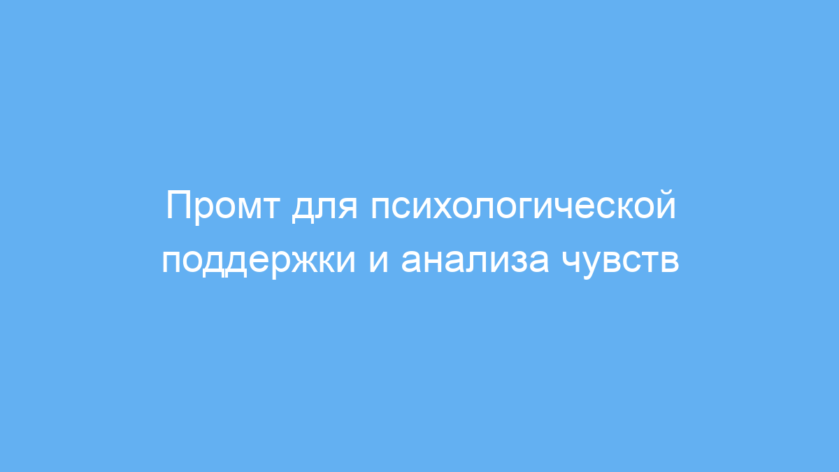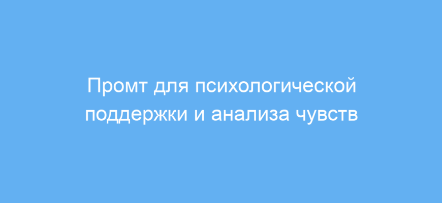 Промт помогает моделировать консультацию с психологом, позволяя нейросети выступать в роли профессионального собеседника и советчика. Его можно использовать в образовательных целях, для самопомощи, а также как часть интерактивных психологических сервисов на основе искусственного интеллекта.