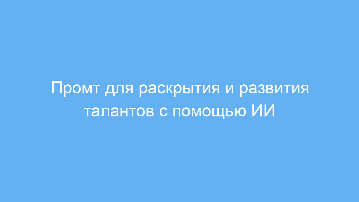 Этот промт создан для тех, кто хочет лучше понять и развить свои таланты с помощью искусственного интеллекта. Он идеально подходит для людей, которые ищут пошаговую помощь в самоанализе, планировании своего профессионального или творческого развития, а также в поиске наставников и ресурсов.
