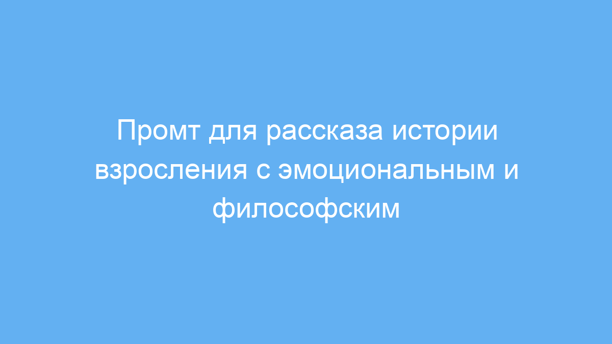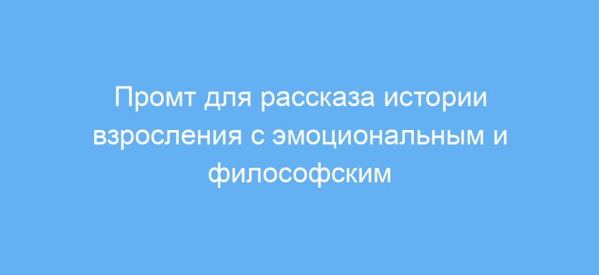 Этот промт помогает быстро создавать сложные и эмоционально насыщенные тексты о взрослении. Он экономит время и вдохновляет нейросеть на глубокое раскрытие темы, сочетая повествование с философским осмыслением. Так вы получаете готовую основу для творчества или публикаций без долгих поисков идеи и структуры.