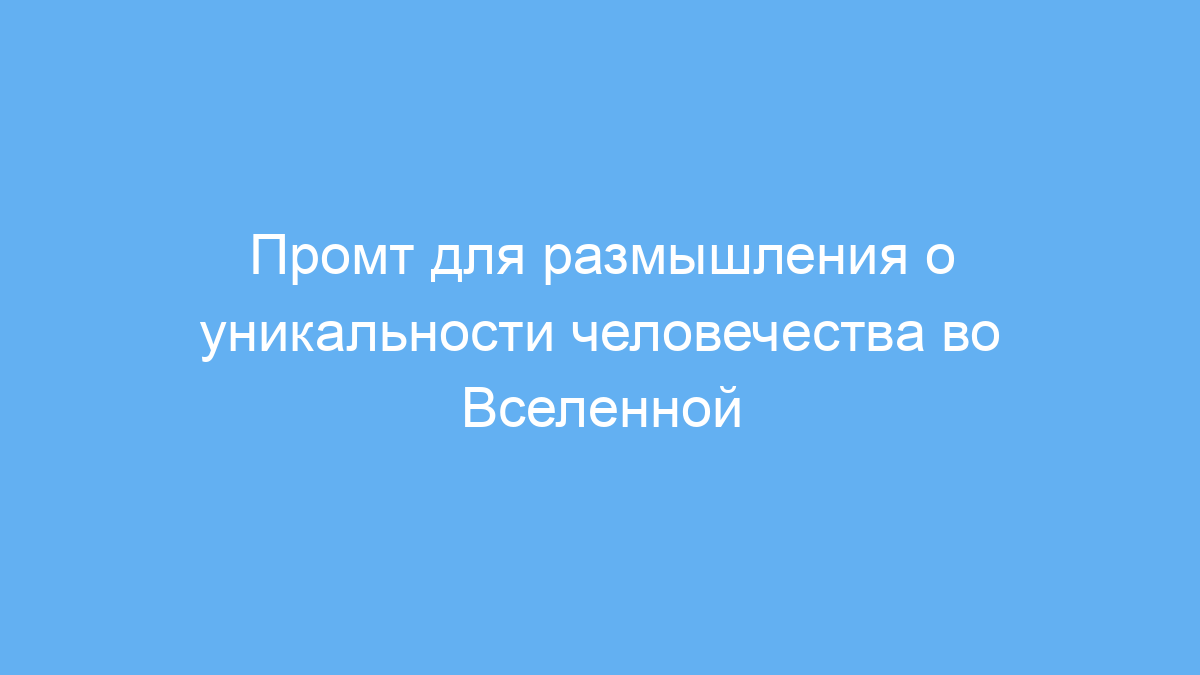 Этот промт предназначен для тех, кто хочет глубже раскрыть тему человеческого сознания и места человечества во Вселенной. Его можно использовать в творческих проектах, эссе, психологических размышлениях или при работе с нейросетями для генерации философских текстов. Промт стимулирует нейросеть создавать развернутый и эмоциональный ответ на тему одиночества, уникальности и ответственности человека во вселенском масштабе.