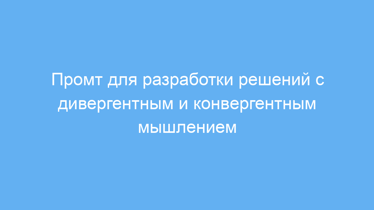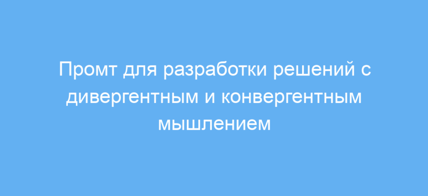 Промт направлен на использование двух ключевых типов мышления: дивергентного — для создания множества вариантов и нестандартных идей, и конвергентного — для оценки и отбора наиболее реалистичных и выгодных решений. Это помогает не только расширить спектр возможных подходов, но и сосредоточиться на практичности и достижении цели.