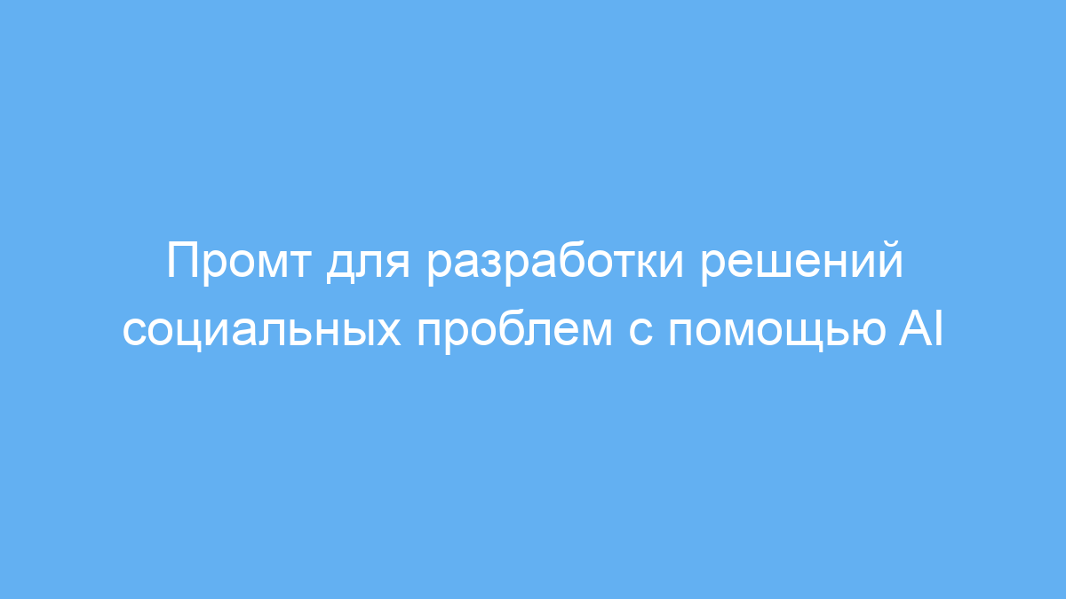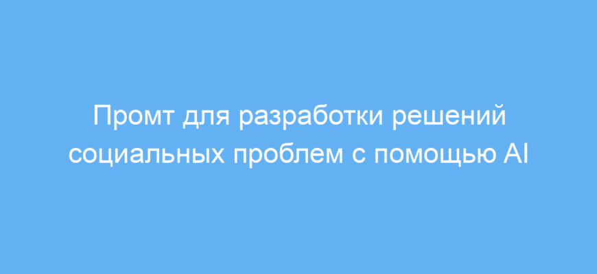 Промт помогает выявить суть социальной проблемы, предоставляя актуальные данные и три конкретных предложения по её решению. Каждое предложение сопровождается миссией, преимуществами, планом реализации и возможными сложностями.