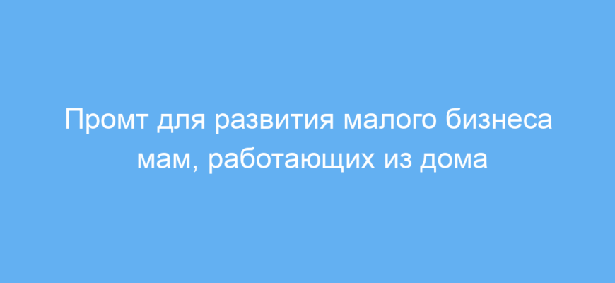 Принцип работы промта прост: он предлагает нейросети представить себя консультантом по развитию малого бизнеса, специализирующимся на мамах-предпринимателях. Нейросеть анализирует проблемы и выдает конкретные советы и инновационные подходы для их решения. Это облегчает работу над планированием и позволяет быстрее находить практичные идеи.