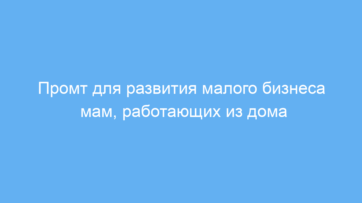 Этот промт создан для мам, которые ведут или планируют начать малый бизнес из дома. Он помогает найти новые и нестандартные решения для ключевых проблем — финансовых трудностей, сложности с управлением временем и балансом между работой и домашними обязанностями. Использование такого промта позволяет получить идеи, которые упрощают повседневные задачи и помогают повысить эффективность бизнеса.