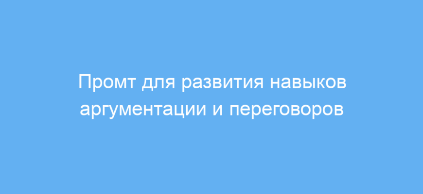- Отвечайте подробно на вопросы промта о вашем опыте в дебатах или переговорах — это поможет получить максимально полезные и релевантные советы.