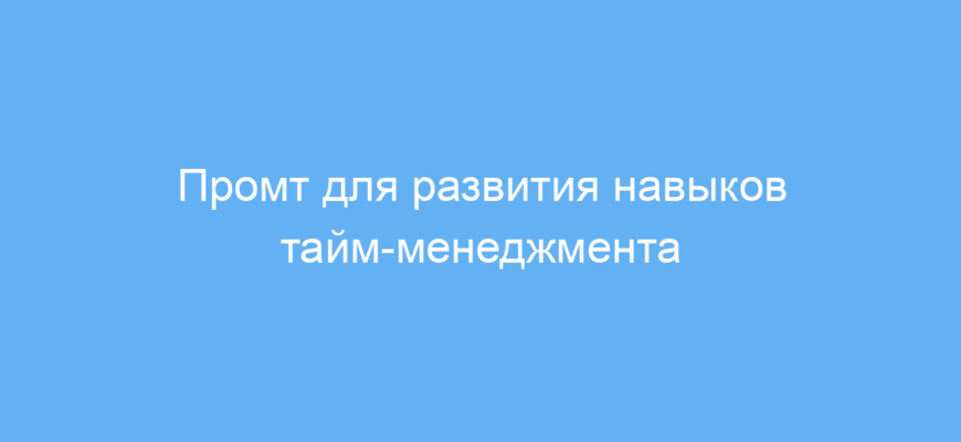 Этот промт полезен всем, кто хочет улучшить свои навыки тайм-менеджмента — будь то студенты, специалисты или предприниматели. Промт помогает выявить критичные аспекты управления временем и предлагает конкретные методики для их улучшения. С его помощью можно разобраться с такими проблемами, как неправильная оценка времени, неэффективная многозадачность, отсутствие четких целей и сложности в расстановке приоритетов.