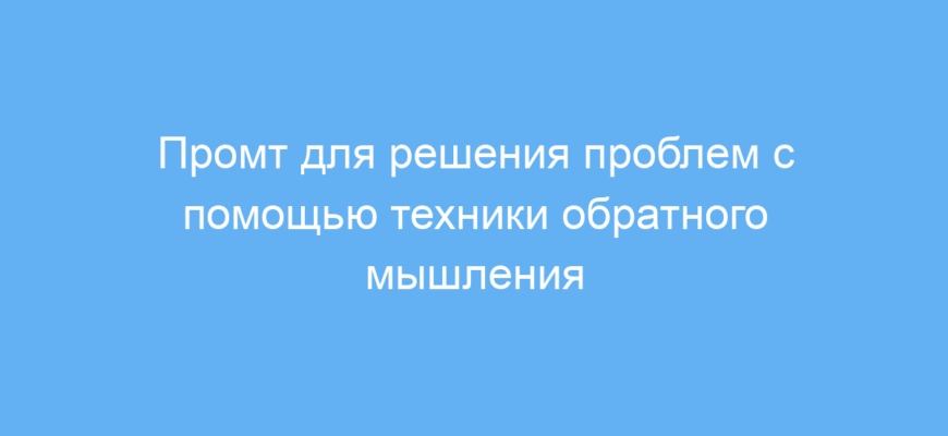 Промт помогает выявить корень проблемы и разработать надежный план действий, применяя метод инверсии — рассмотрение наихудшего сценария с последующей разработкой мер предотвращения. Такой подход снижает риски и улучшает качество принимаемых решений. Работает он поэтапно, направляя пользователя последовательно через все стадии анализа и улучшения ситуации.