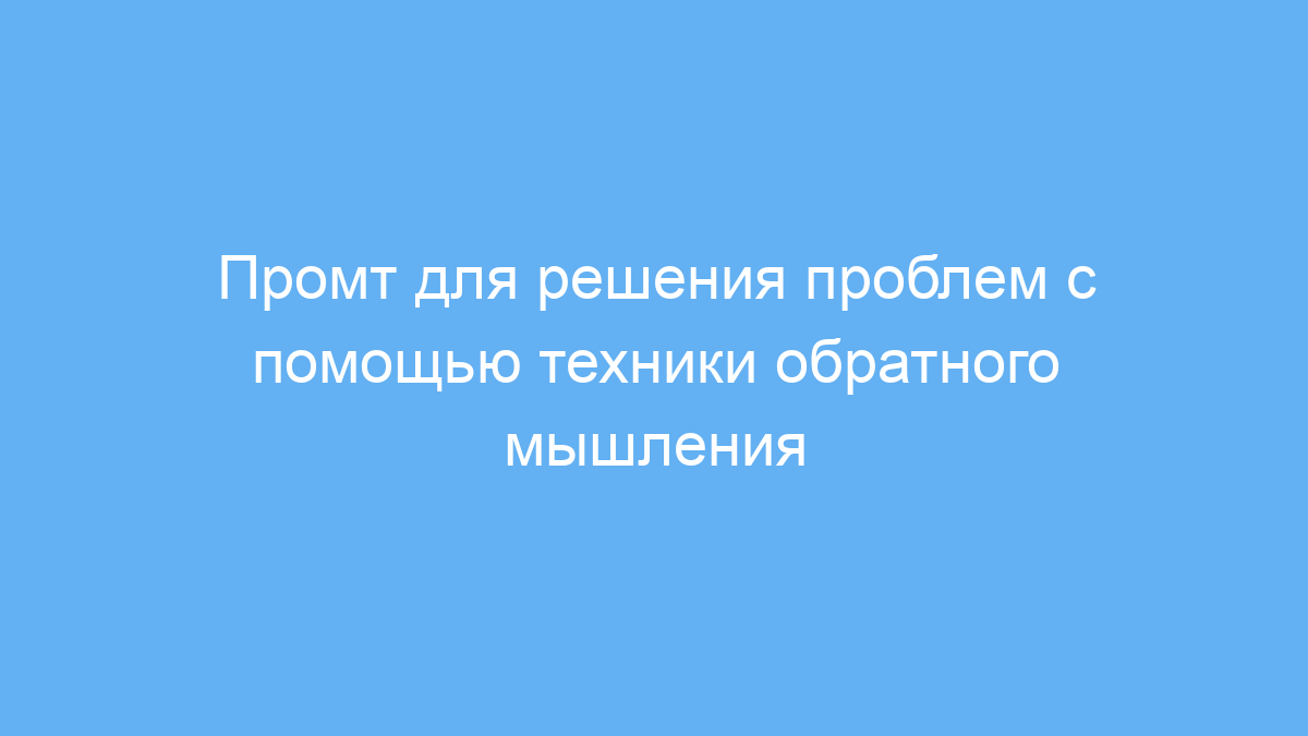 Этот промт создан для тех, кто хочет эффективно решать сложные вопросы в личной жизни или бизнесе с помощью метода обратного мышления (Inversion Thinking). Он идеально подойдет психологам, коучам, менеджерам, специалистам по критическому мышлению и всем, кто ценит структурированный подход к анализу проблем.