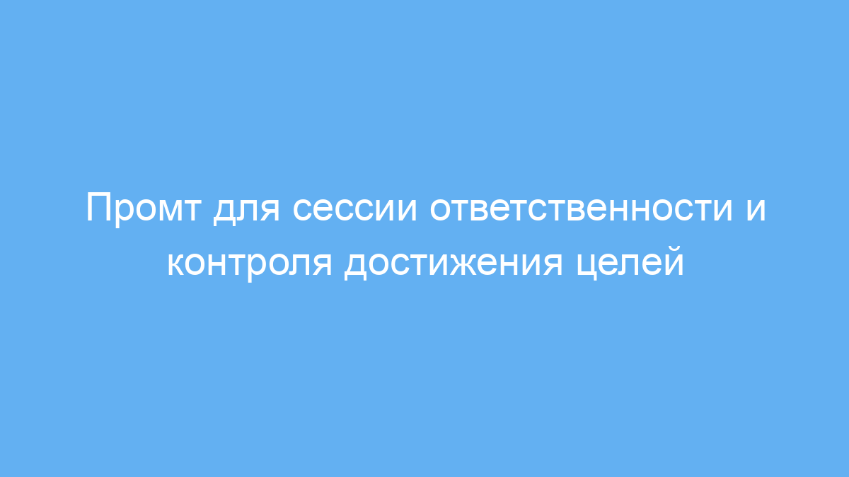 Промт проводит структурированную сессию ответственности — задаёт вопросы по этапам, помогает анализировать ситуацию, мотивирует на поиск решений и самоконтроль. Рассматриваются ресурсы, сложности и сильные стороны пользователя, а также предлагаются рекомендации для повышения эффективности. Такой диалог помогает человеку не сбиваться с курса и четко понимать, что именно нужно сделать, чтобы достичь цели.