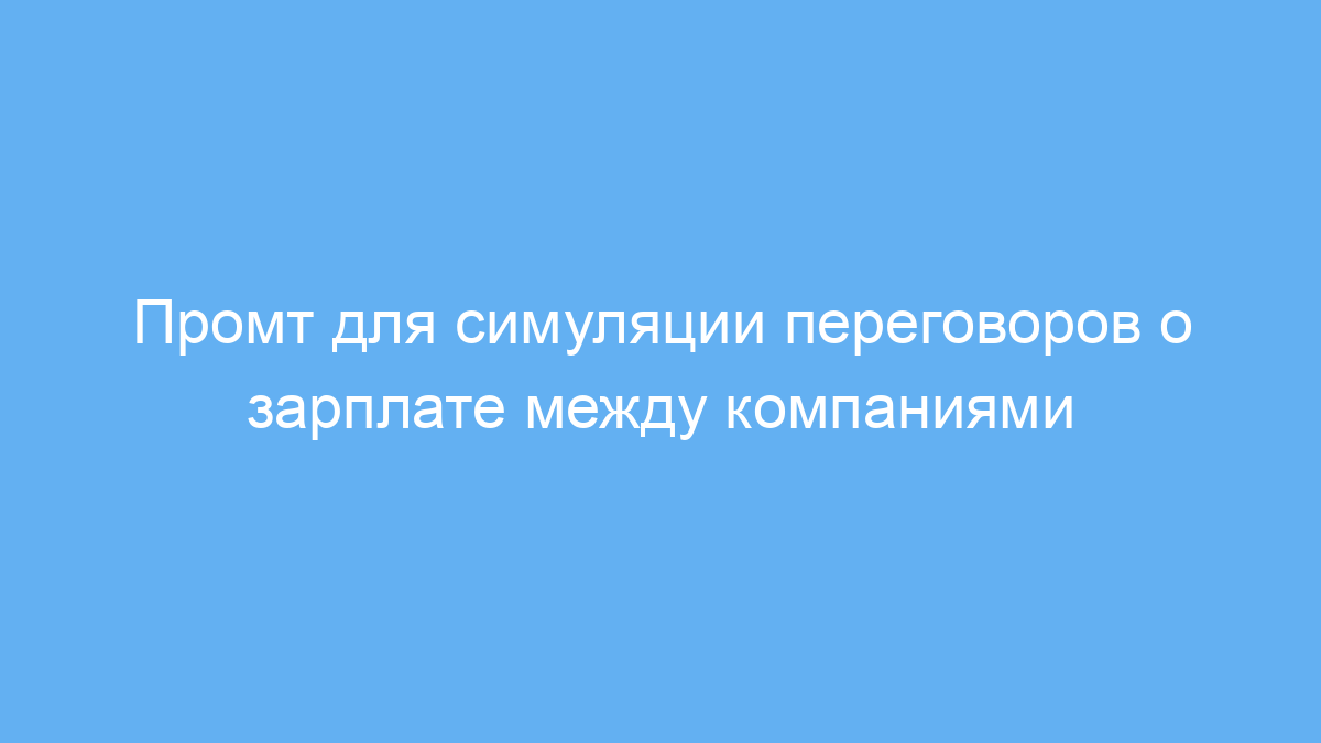 Этот промт предназначен для тех, кто хочет попрактиковаться в ведении переговоров о зарплате между кандидатом и несколькими компаниями. Используя его, вы сможете смоделировать реальную ситуацию выбора работы, где нужно сравнить предложения и убедить работодателей повысить условия. Это отличное решение для соискателей, студентов, специалистов по кадрам и тренеров по переговорам.