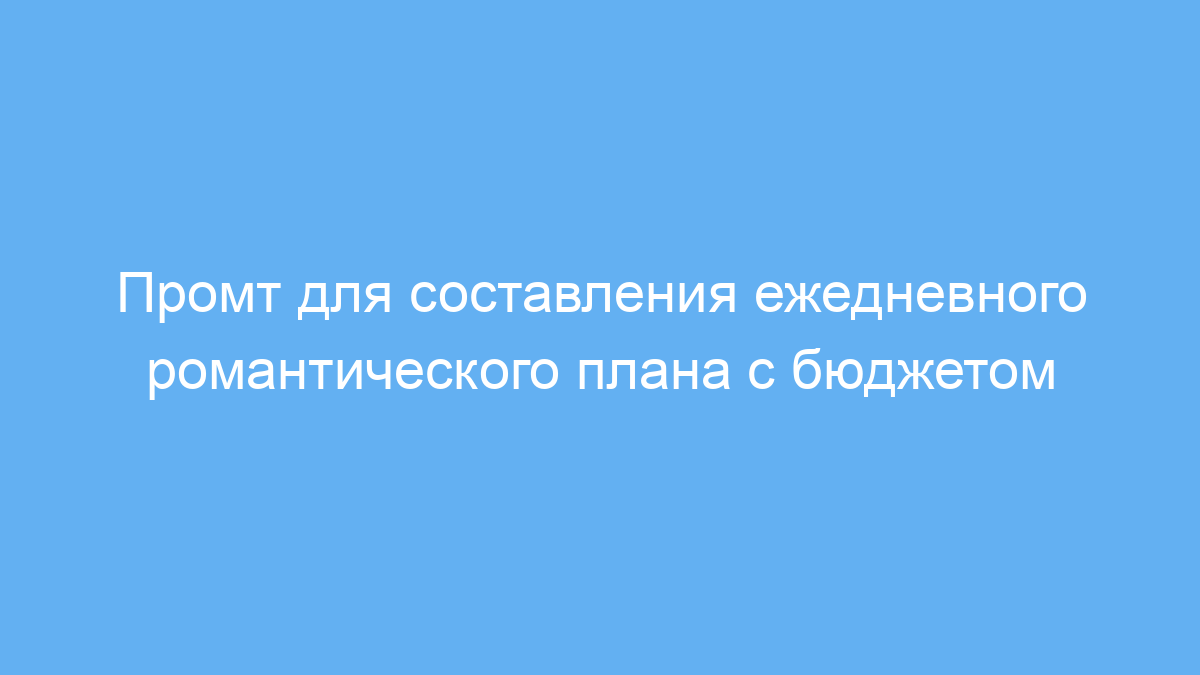 Промт работает так: вы вводите свой бюджет и ситуацию (например, «Я студент с бюджетом 20 долларов на романтику»), после чего нейросеть генерирует список различных романтических вариантов на каждый день. Это упрощает планирование, ведь вы получаете готовые рекомендации, которые легко реализовать в реальной жизни.
