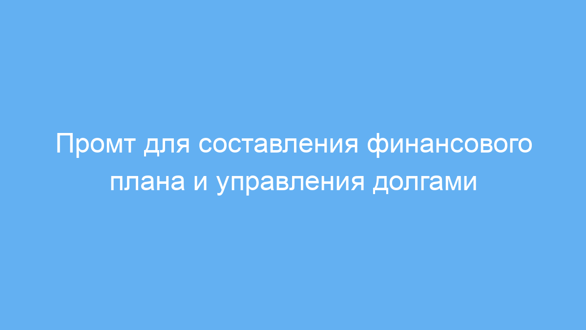 Промт помогает структурировать мысли, план действий и понять, какие шаги важны для достижения финансовой стабильности. Он решает проблемы неопределённости в планировании, помогает расставить приоритеты в погашении долгов и мотивирует начать инвестировать своевременно.