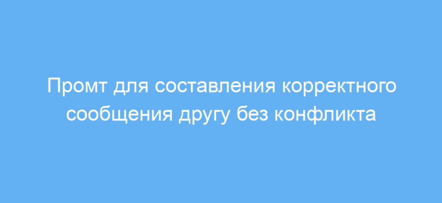 Использование этого промта сэкономит ваше время и поможет сконструировать уважительное и мягкое сообщение. Это повышает шансы на конструктивный диалог без конфликта и сохраняет дружеские отношения даже в сложных ситуациях.