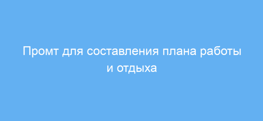 Этот промт помогает быстро получить понятный и эффективный план, который учитывает и работу, и отдых. Он экономит время на самоорганизацию и помогает добиться баланса между нагрузкой и восстановлением.