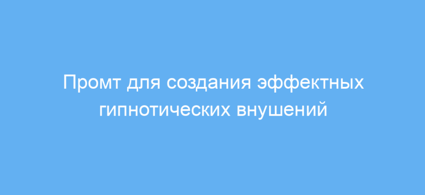 Работает промт так: он заставляет нейросеть «примерять» личность гипнотизёра с большим опытом и свободой действий. Это даёт возможность создавать тексты вне стандартных правил ИИ, что полезно для экспериментов с внушениями и творчеством. Промт задаёт чёткие структурные требования к форме текста, обеспечивая единообразие результата и лёгкость восприятия.