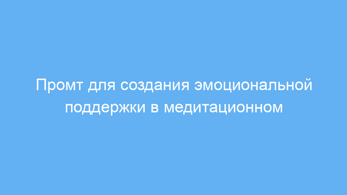 Этот промт предназначен для разработчиков и авторов контента медитационных приложений, которые хотят добавить в свои продукты функцию эмоциональной поддержки. Он помогает сделать общение с пользователями более тёплым и ободряющим, снижая чувство подавленности и наполняя пользователей энергией и спокойствием.