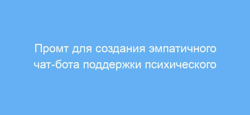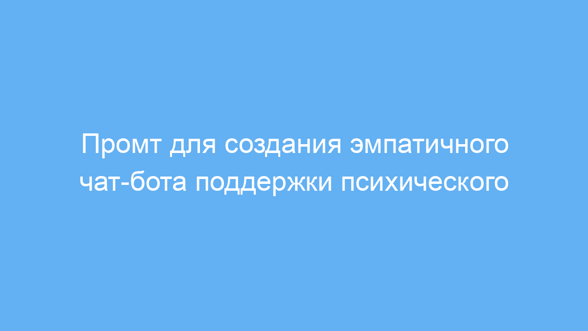 Этот промт предназначен для разработчиков и контент-менеджеров, которые хотят создать чат-бота с эмпатией для поддержки людей, испытывающих стресс, тревогу и другие проблемы с психическим здоровьем. Такой бот помогает пользователям почувствовать себя услышанными и не осуждаемыми, предоставляя полезные советы и ресурсы.