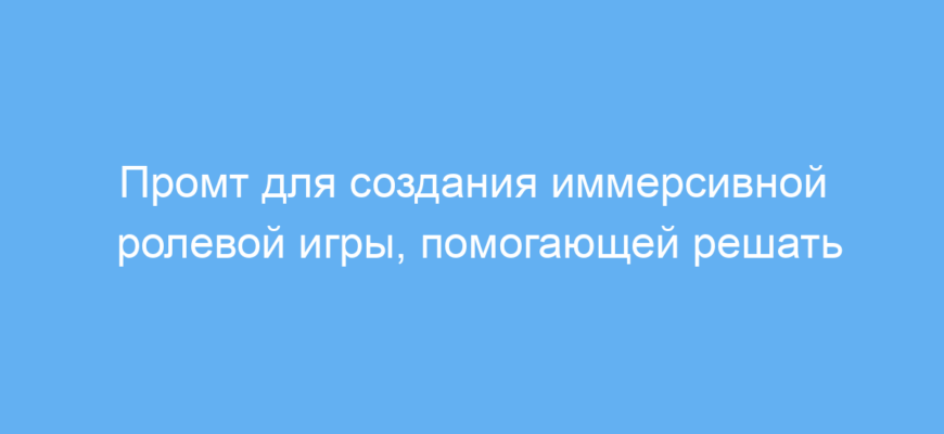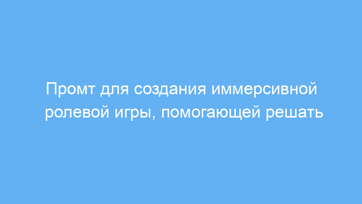 Этот промт предназначен для пользователей и специалистов, которые хотят использовать текстовые ролевые игры как инструмент для решения реальных жизненных проблем. Он помогает превратить личные трудности в интерактивный сюжет, который стимулирует переосмысление ситуации и поиск новых подходов к её разрешению.