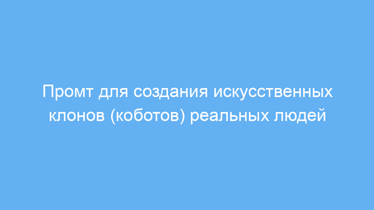 Этот промт разработан для специалистов и энтузиастов, которые хотят создавать виртуальные копии реальных людей — так называемых коботов. Он помогает формировать максимально точные профили личности, используя только общедоступную информацию. Такой подход полезен, когда необходимо понять или воссоздать индивидуальные особенности человека для исследований, обучения или интерактивных приложений.