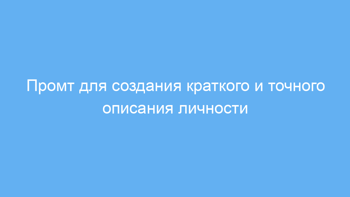 Этот промт предназначен для специалистов по кадрам, участникам конференций, докладчикам и всем, кто хочет получить четкое и емкое описание своей личности для представления перед профессиональной аудиторией. Он помогает быстро составить уверенное и профессиональное представление о себе или о ком-то другом, что важно при подготовке к интервью, выступлениям или официальным мероприятиям.
