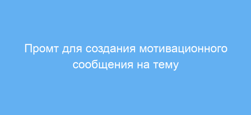 Использование этого промта позволяет быстро получать мотивирующие тексты, ориентированные на конкретную тему и целевую аудиторию. Это экономит время и помогает создавать эффективный контент для разных целей.