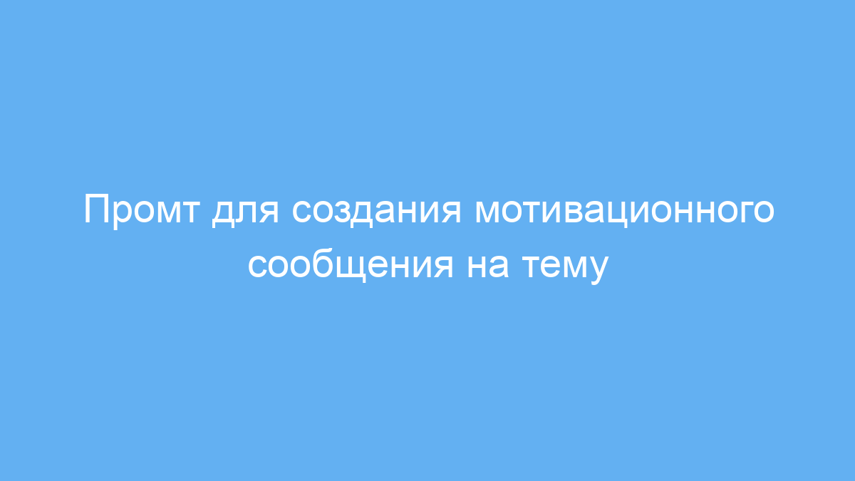Основная задача промта — сгенерировать короткое, ёмкое и вдохновляющее сообщение по заданной теме и для конкретной аудитории. Это помогает экономить время и усилия, не создавая мотивационные тексты вручную.