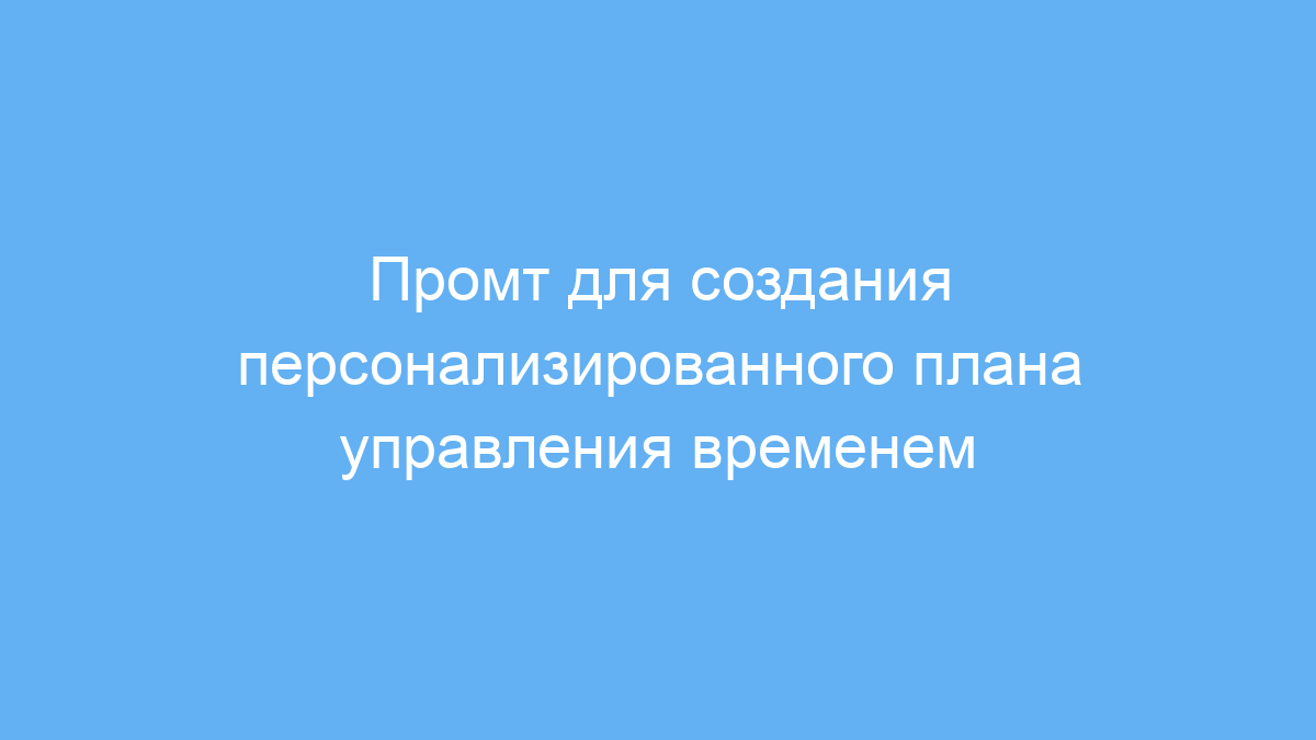 Этот промт экономит ваше время и силы, предлагая готовый алгоритм для создания персонального плана управления временем. С его помощью легко структурировать задачи, повысить продуктивность и снизить стресс. Даже если у вас много дел, вы будете работать осознанно и целенаправленно.