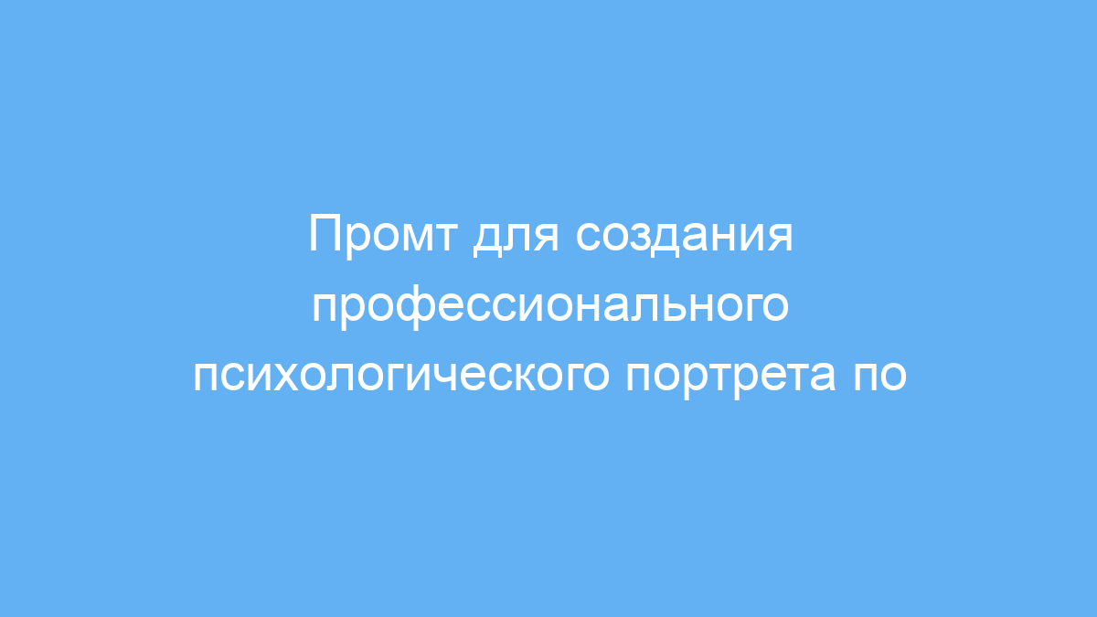 Как работает промт? Он ставит нейросети задачу выступить в роли опытного психолога, который анализирует доступный текст пользователя и формирует подробный и аргументированный психологический портрет. В результате получается структурированная характеристика, основанная на стиле и содержании публикаций, которую можно использовать для дальнейшего тестирования или анализа.