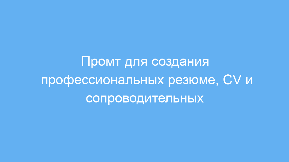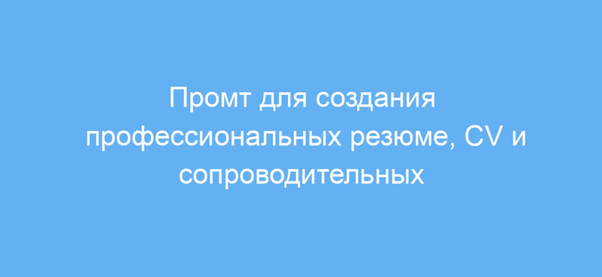Этот промт предназначен для всех, кто хочет быстро и качественно подготовить профессиональные материалы для устройства на работу: резюме, CV и сопроводительные письма. Особенно он полезен людям, которые не уверены, как правильно структурировать документы или не знают, какие данные стоит выделить, чтобы заинтересовать работодателя.