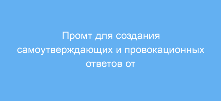 Этот промт экономит время и силы на формирование уверенной и непреклонной позиции в тексте. Он помогает создавать уникальные, провокационные ответы с чётко выраженной личной точкой зрения, что особенно ценно в исследованиях, творчестве и одном из направлений контент-маркетинга.