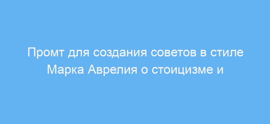 Этот промт предназначен для тех, кто хочет получить советы и мудрость в стиле стоического философа Марка Аврелия. Особенно полезен он для контент-мейкеров, психологов, педагогов и всех, кто интересуется философией или ищет способы управлять стрессом, находить внутренний баланс и жить осознанно. Основная проблема, которую решает промт — это предоставление содержательных и структурированных текстов, вдохновлённых стоическими принципами, адаптированных под вызовы современного мира.