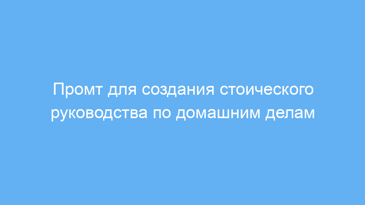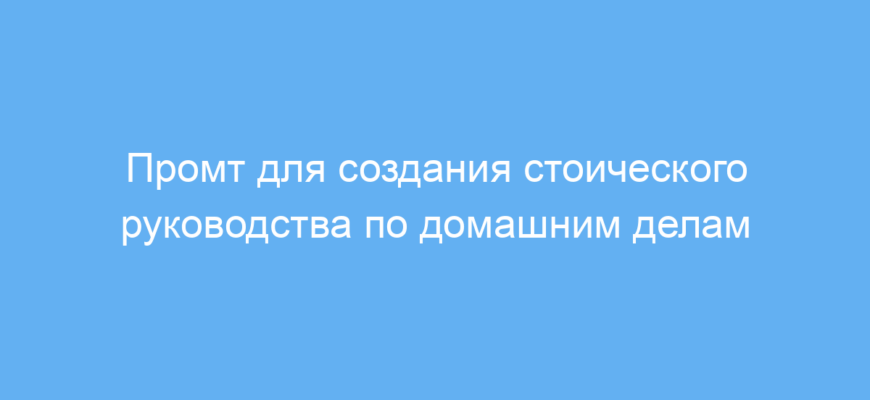 Промт работает так: нейросеть начинает с уточнения, какое именно домашнее задание пользователь собирается выполнить. Затем она генерирует детальное руководство, в котором сочетаются практические рекомендации по домашнему делу и размышления в духе стоицизма — про самоконтроль, важность разума и эмоционального равнодушия к обстоятельствам. В итоге вы получаете не только полезные инструкции, но и философские подсказки для собственного развития.