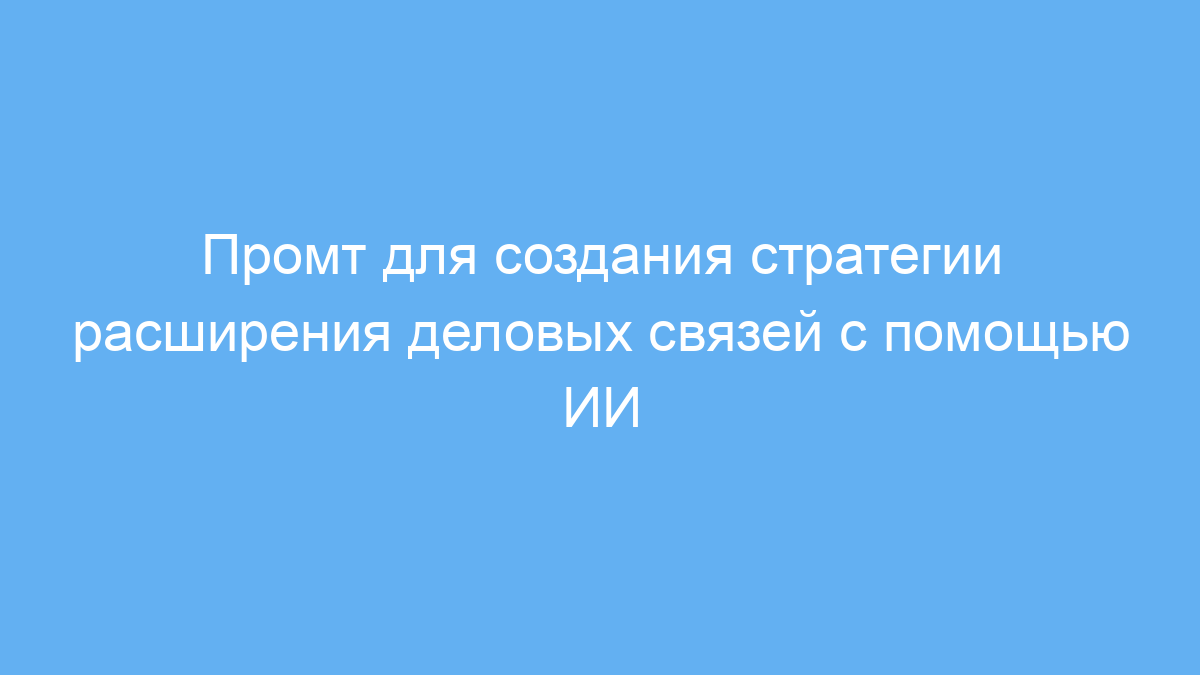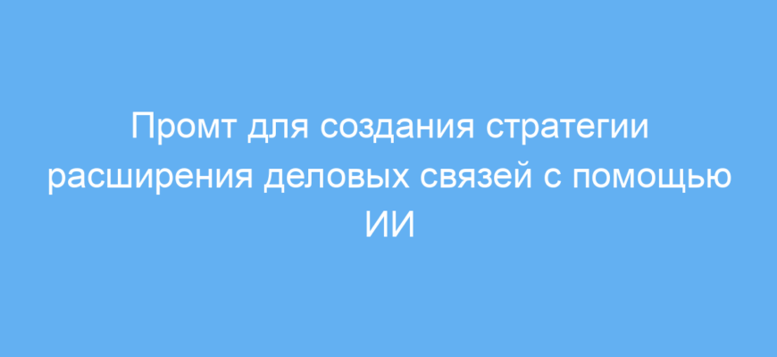 Этот промт предназначен для предпринимателей и бизнесменов, которые хотят расширить свою сеть деловых контактов и установить выгодные деловые отношения. Часто для развития бизнеса важно не только создавать продукт или услугу, но и строить крепкие связи с партнёрами, инвесторами и клиентами. Такой промт помогает разработать грамотные стратегии и методы по созданию эффективной сети контактов.