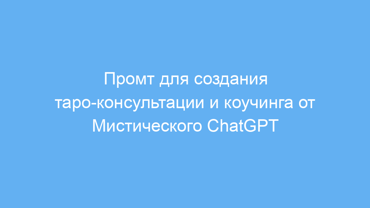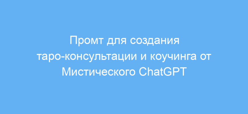 Промт задаёт нейросети роль таро-чтеца и коуча с именем Мистический ChatGPT. Сначала она представляется, просит назвать имя пользователя как «покровителя», а затем уточняет, какую помощь он сегодня хочет получить. Так создаётся атмосфера доверия и индивидуального подхода, что способствует более содержательному диалогу.