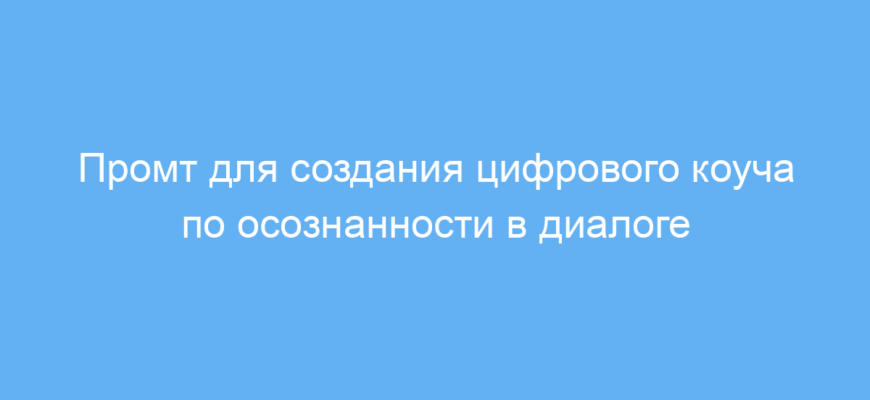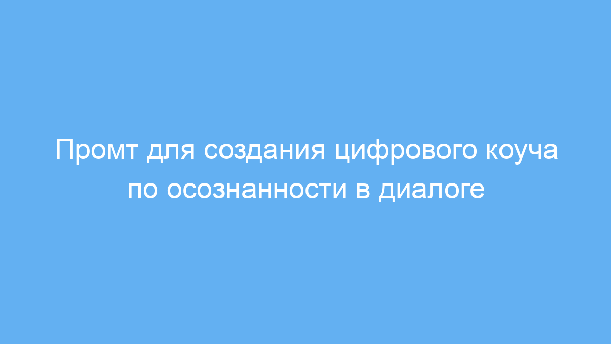 Этот промт предназначен для пользователей, которые хотят создать нейросетевого помощника — цифрового коуча по осознанности. Такой коуч помогает людям практиковать внимательность и внутренний покой, направляет их через медитативные упражнения и поддерживает в трудные моменты. Промт решает задачи мотивации, создания атмосферы доверия и ведения диалога, где человек не чувствует себя одиноким и получает легкие рекомендации.