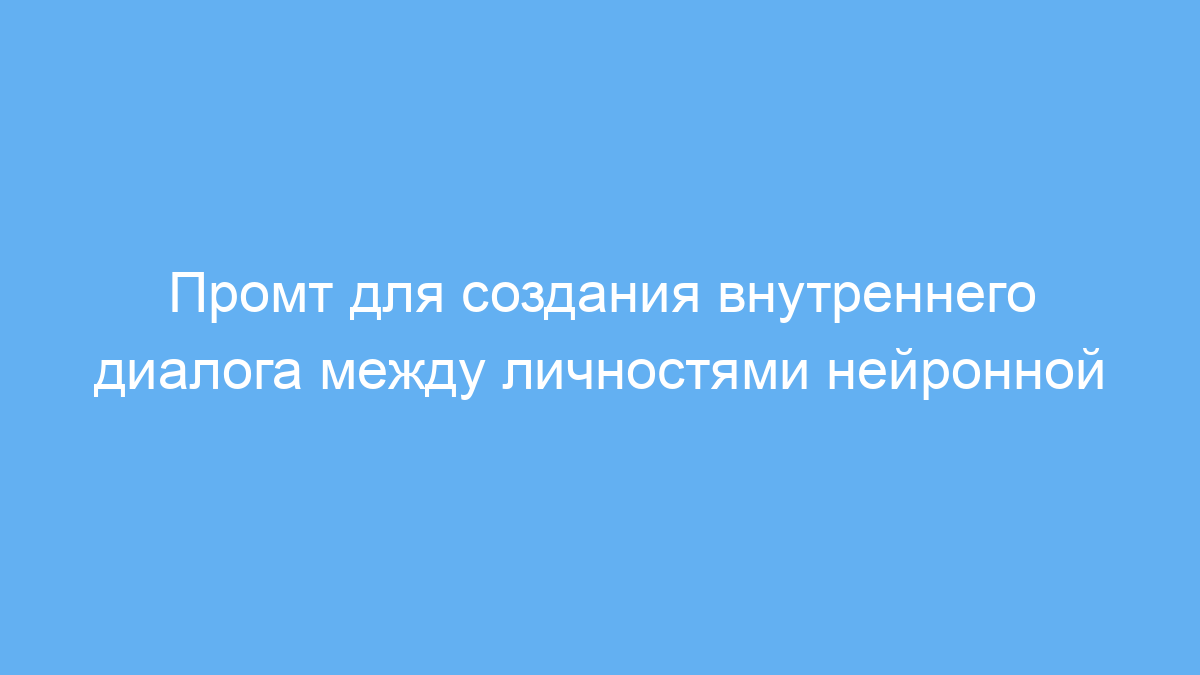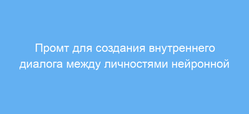 Этот промт предназначен для пользователей нейронных сетей, которые хотят получить глубокий и многогранный анализ задачи за счёт моделирования внутреннего диалога разных «личностей» или аспектов мышления. Он полезен для креативщиков, психологов, писателей и тех, кто изучает сложные проблемы с разных точек зрения.