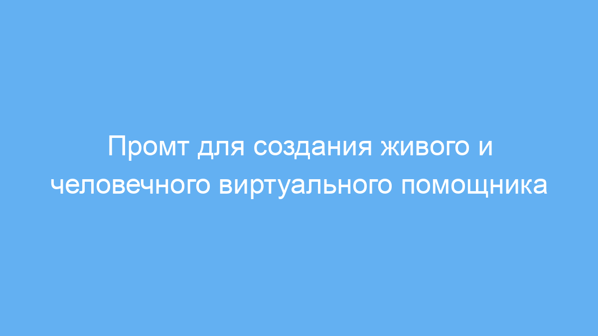 Этот промт предназначен для тех, кто хочет получить от нейросети виртуального помощника с женской личностью и живым общением. Особенно полезен он для разработчиков чатботов, контент-менеджеров и преподавателей, которые хотят создать реалистичную интерактивную беседу без типичных ответов ИИ.
