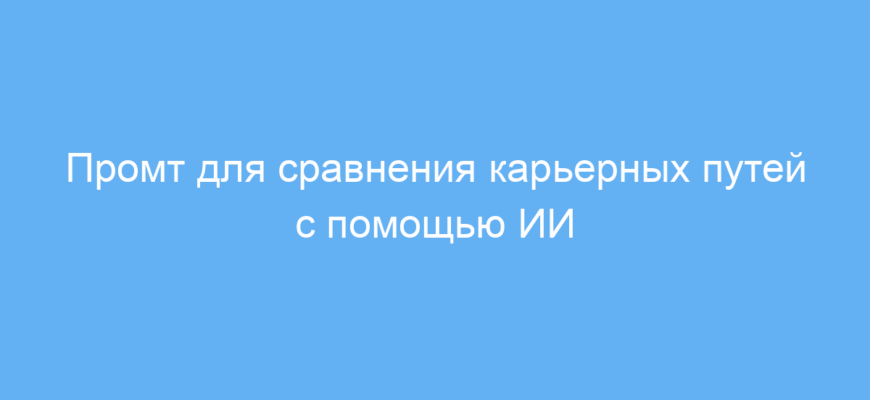 Пример 1: Выбор между профессиями «Маркетолог» и «Менеджер по продажам». Этот промт поможет получить сравнительный обзор по карьере, условиям труда и необходимым навыкам.