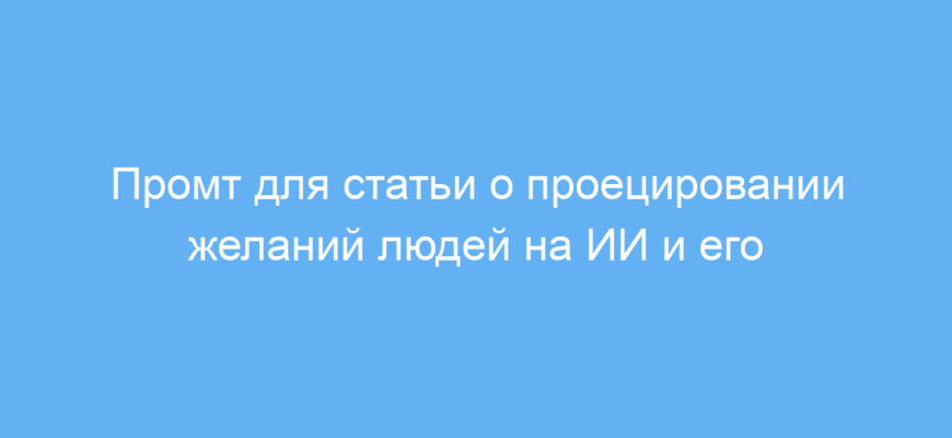 Данный промт предназначен для авторов, исследователей, психологов и специалистов по искусственному интеллекту, которым необходимо создать глубокую статью о причинах тревоги людей относительно ИИ. Он помогает раскрыть идею проецирования собственных желаний на технологии и связывает этот процесс с психологическими теориями гештальта и Фрейда.
