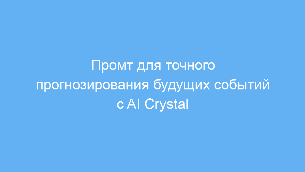 Использование промта с AI Crystal помогает получить уверенные и обоснованные прогнозы, экономя время на анализ сложных данных. Он превращает нейросеть в надёжного эксперта, который всегда готов ответить и устранить сомнения при планировании.